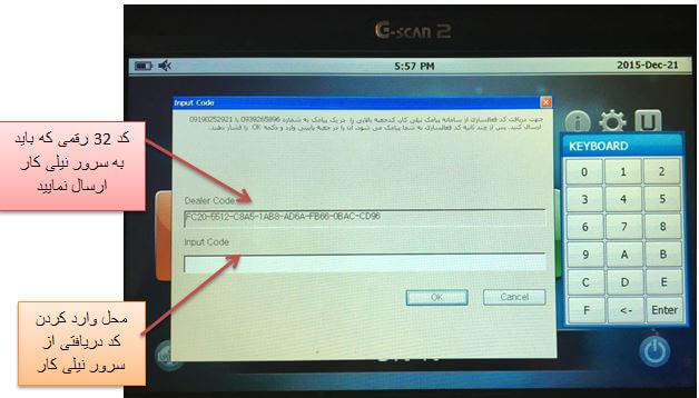 نکته 2) در حین فرآیند ارسال و دریافت کد و فعالسازی، دستگاه جی اسکن خود را خاموش نکنید و از این منو خارج نشوید زیرا در اینصورت کد تغییر خواهد کرد.