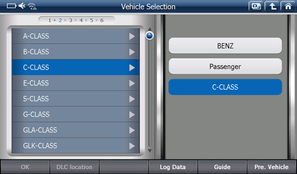 ابتدا از منوی عیب یابی برند مرسدس بنز Mercedes Benz را انتخاب می کنیم.