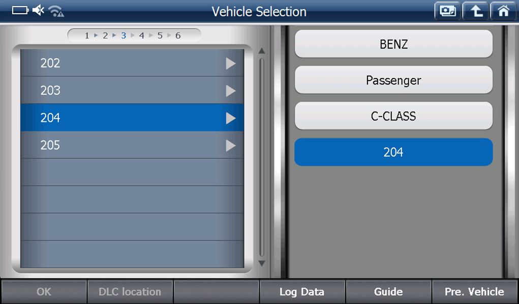 از منوی عیب یابی مانند روش قبلی برند و نوع خودرو را انتخاب می کنیم.
