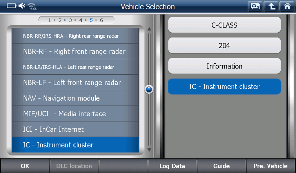 در کنترل یونیت information گزینه ی IC یا صفحه آمپر را انتخاب می کنیم.