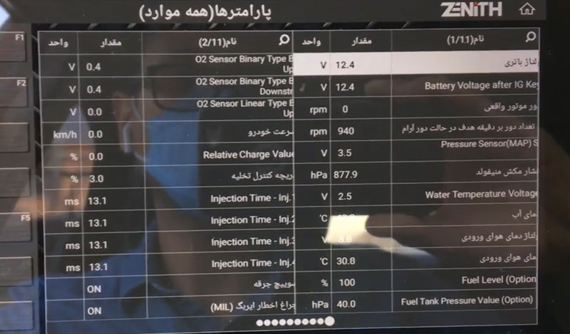 تمام پارامترهای موتور را میتوانید ببینید. بسیاری از این پارامترها به زبان فارسی میباشند. تا شما به راحتی بتوانید از آنها استفاده نمائید. توجه داشته باشید که استفاده از پارامترها در عیب یابی خودرو بسیار مهم است.