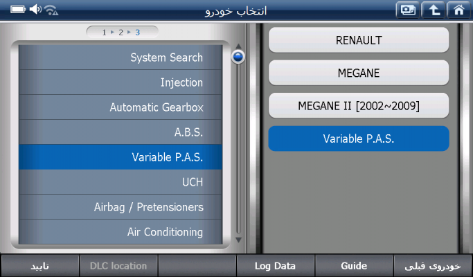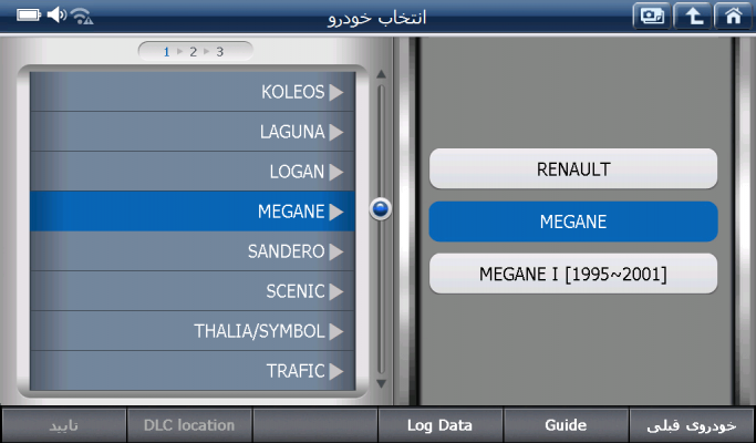 ابتدا از منوی عیب یابی برند رنو را انتخاب کنید.