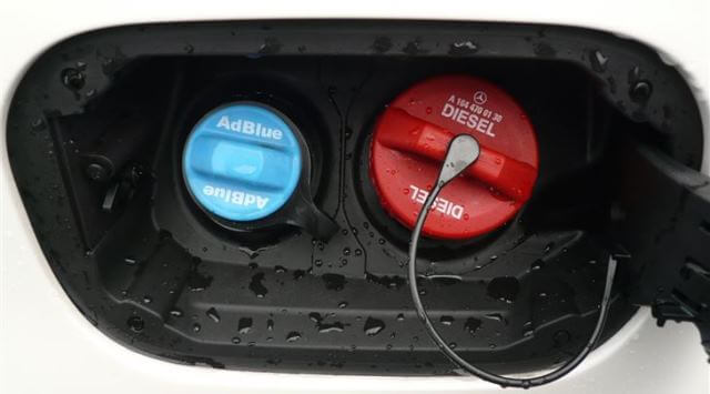 در بعضی از خودروها پرکن مخزن ادبلو در کنار پرکن مخزن گازوئیل قرار دارد، مانند شکل زیر: