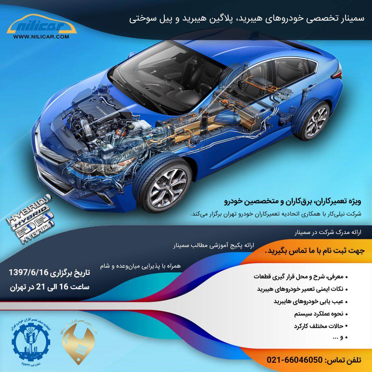 سمینار تخصصی خودروهای هیبرید، پلاگین هیبرید و پیل سوختی توسط شرکت نیلی کار با همکاری اتحادیه تعمیرکاران خودرو در 16 شهریور ماه 97 در محل سالن تشریفات کردستان برگزار شد.