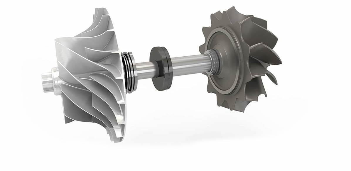 - کمپرسور: پره های کمپرسور از نوع گریز از مرکز طراحی شده اند تا هوا را از مرکز کشیده و به اطراف پرتاب کنند. این قطعه نیز از فلز سبک و مقاوم ساخته شده است.