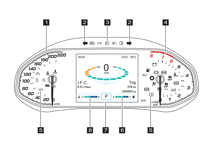 بخشهای مختلف صفحه کیلومتر خودروی تیگو 7