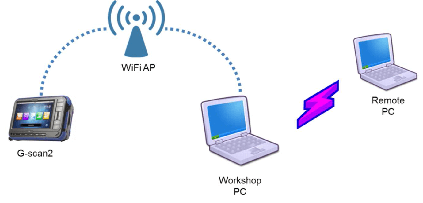 این امکان وجود دارد که پشتیبان فنی از طریق برنامه های دسترسی از راه دور مانند Team viewer   به واسطه ارتباط اینترنتی به کامپیوتر تعمیرگاه شما متصل شود و همانند توضیحات بالا برنامه VNC Viewer  را فعال کرده و به صورت ریموت کنترل به جی اسکن دو شما متصل گردد.