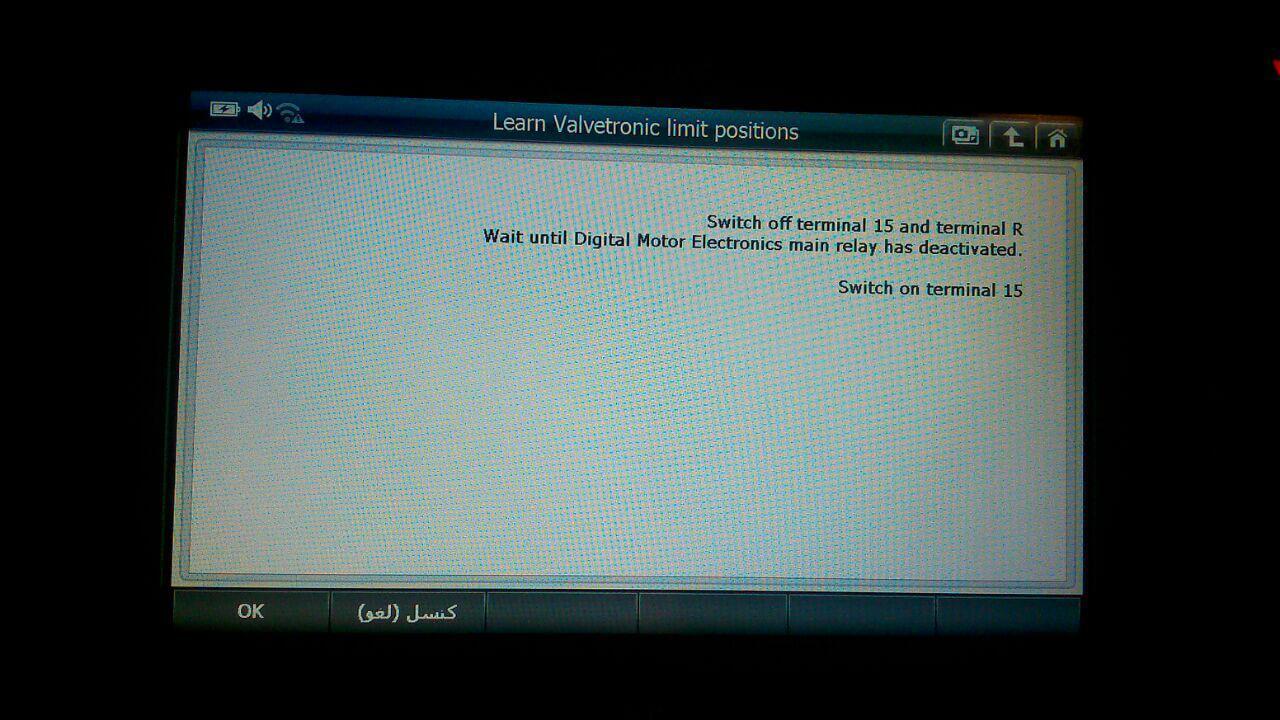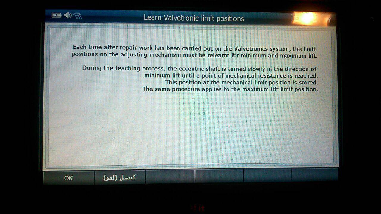 حدود موقعیت سیستم valvetronic با موفقیت تعریف شد.