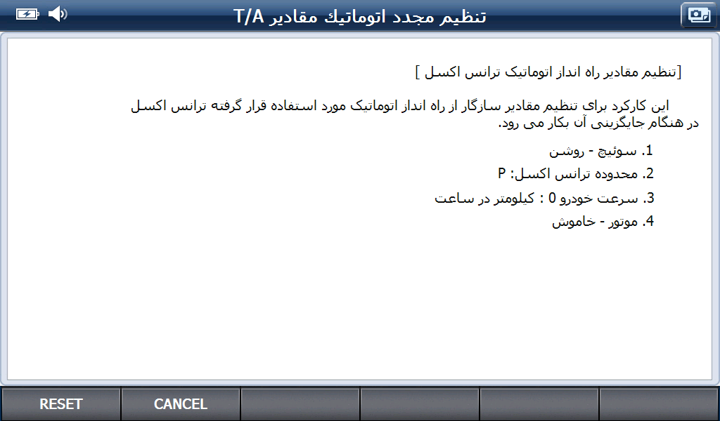 همانطور که در شکل زیر مشاهده می کنید، شرایط ریست گیربکس اتوماتیک به قرار زیر است: