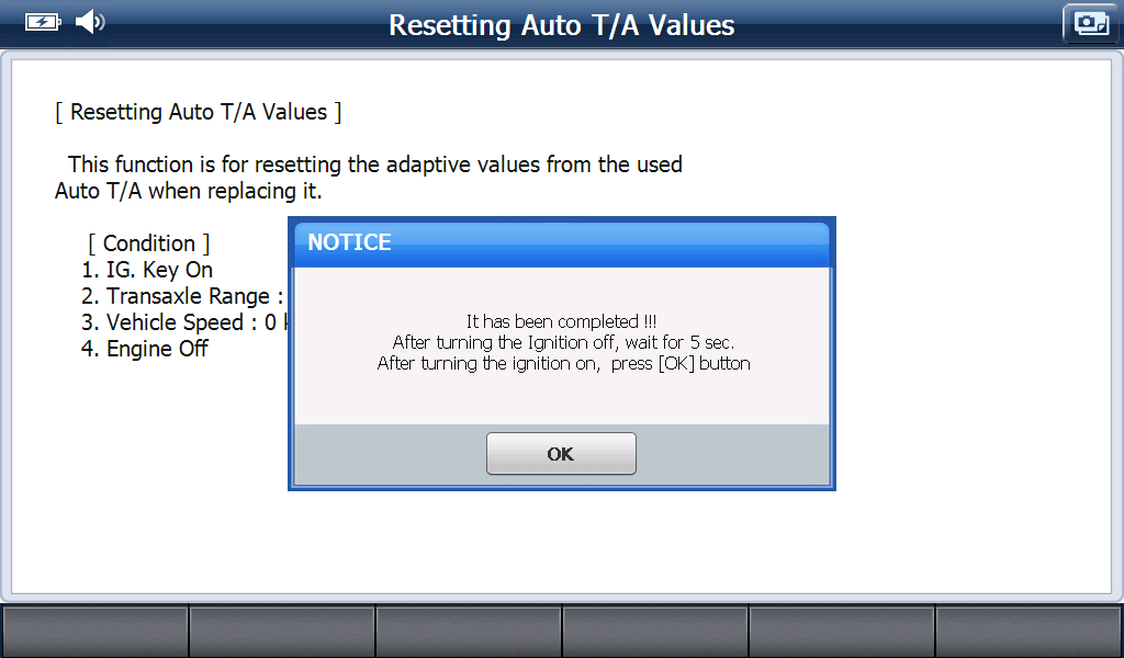 در این صفحه از شما سوال می شود که آیا برای انجام این عملیات مطمئن هستید، شرایط سوئیچ باز و موتور خاموش باشد.
