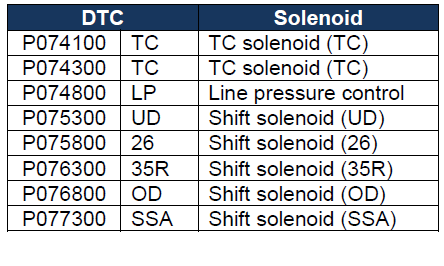 همچنین در جدول زیر کدهای خطای گیربکس اتوماتیک و شیربرقی های مربوط به هرکدام را مشاهده می کنید.