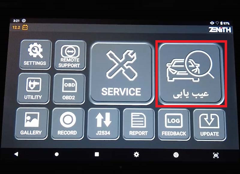از منوی اصلی دستگاه دیاگ Z5، گزینه عیب یابی را انتخاب میکنیم.