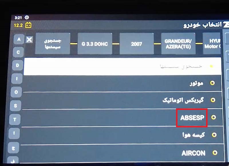 نحوه کالیبراسیون سنسور زاویه فرمان هیوندای آزرا با دیاگ Z5