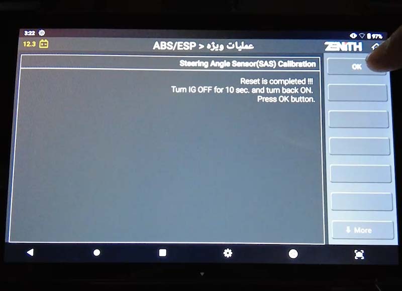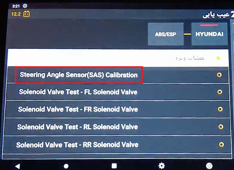 داخل یونیت ABS، گزینه عملیات ویژه و سپس گزینه STEERING ANGLE SENSOR(SAS) CALIBRATION را انتخاب میکنیم.